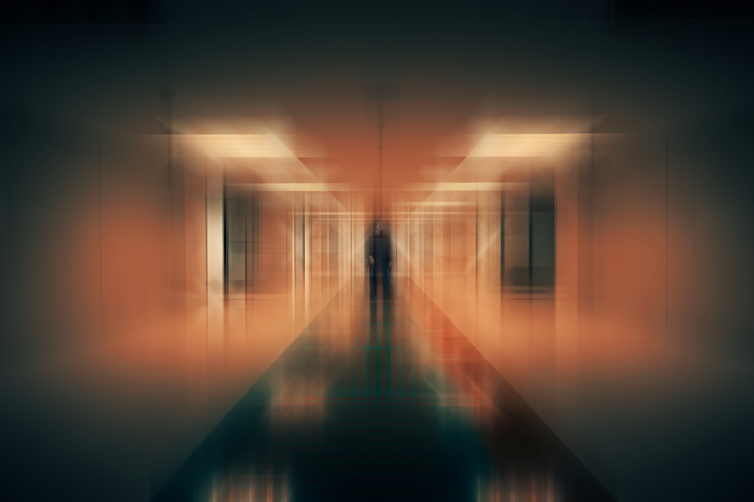 By placing people within these scenes, I can emphasize and direct the narrative while adding geometric intrigue through buildings and structures. My photographic work integrates abstract components to encourage individual interpretation by viewers.  I experiment with out-of-focus effects, different types of blur and combining multiple images to increase the level of abstraction slightly.