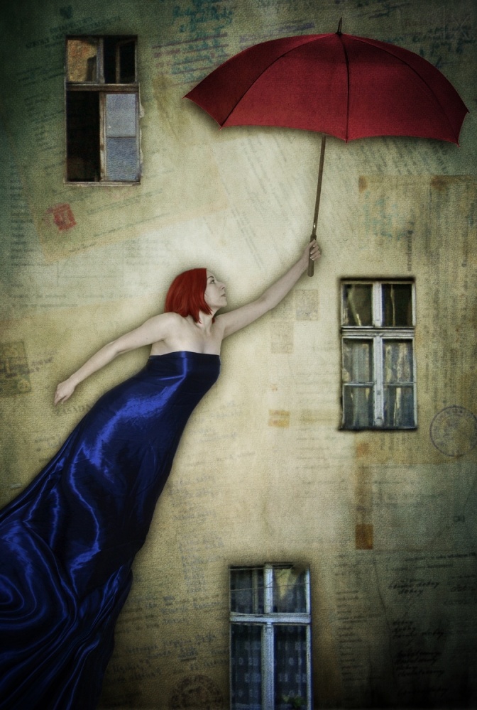 Hi I'm researching you for my A level coursework and I btw I love your style - do you mind answering a few questions? 1) What is the meaning behind your work in general (in particular the last one on this page with the woman in blue with a red umbrella) - is there a significance to the letters in the background (e.g. are they your own?) 2) What media do you use? I know it is mainly digital but do you do any of your own painting? (do you include your own paintings in these graphics) 3) Was there anything significant going on in your life at the time to inspire you to create these artworks? 4) Are there any specific art techniques that you have used? I notice some vignette in most of your artworks with them fading into the darkness near the edges - is this significant? 5) What art movement if any would you say you're a part of? (eg. contemporary/ impressionistic/ surrealist etc) And finally, how do you choose what objects to include in your artworks? are they random? or do each bit hold a different meaning? Thank you so much, please do get back to me soon :)